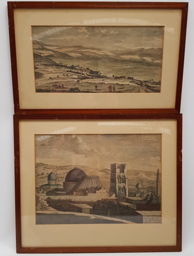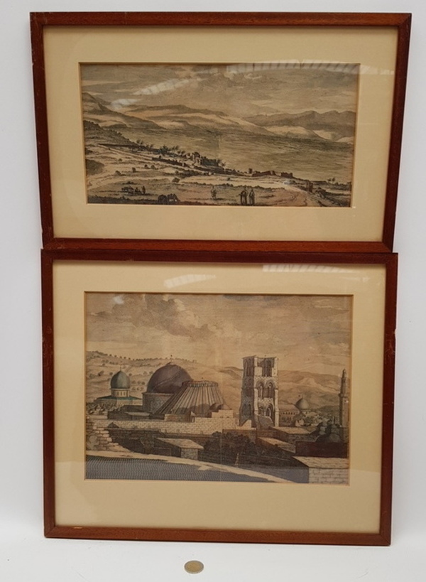 Prenten 2 stuks landschappen, onbekend 20e eeuw. |