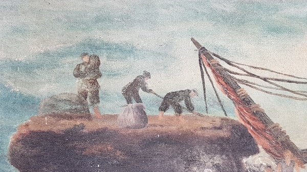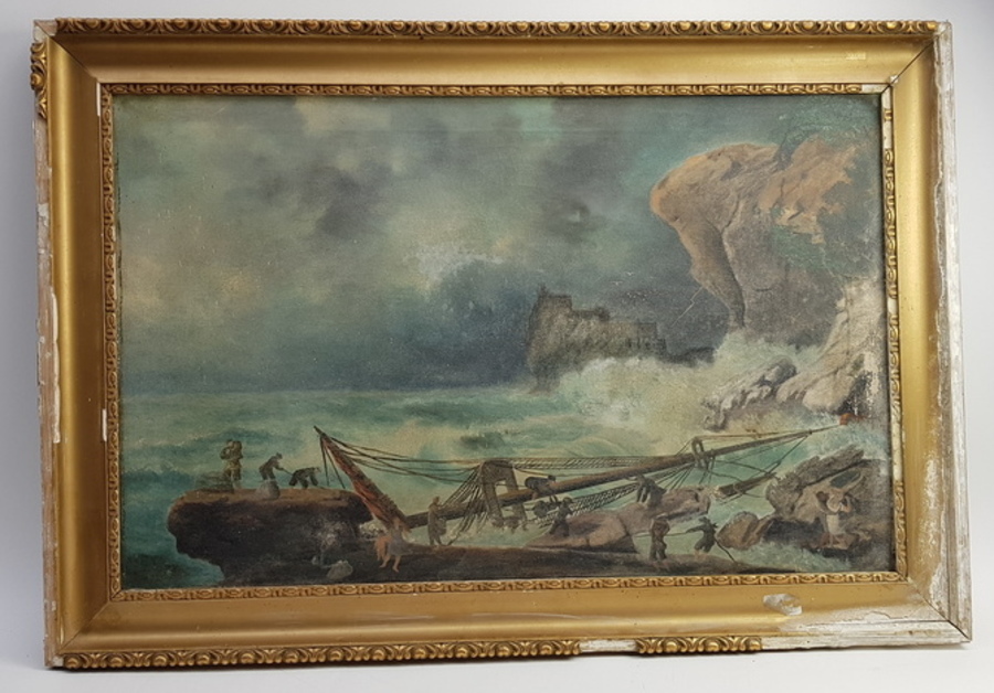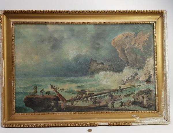| Naam | Olieverf schilderij op doek, schipbreukelingen. onbekend 20e eeuw. | |