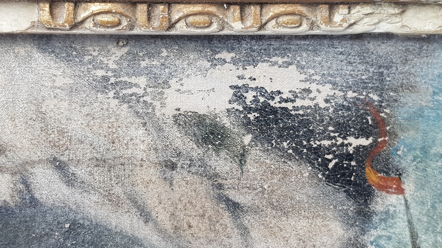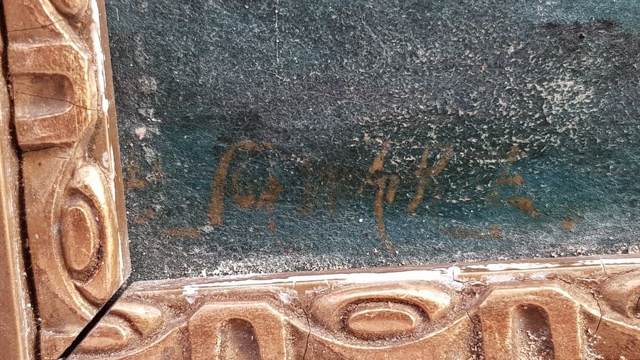 | Conditie | Redelijke conditie, Lijst en schilderij zijn beschadigd. | |
