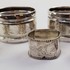 Zilver, 2 servetringen + 3 vingerdoek ringen 19/ 20e eeuw.
