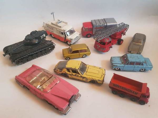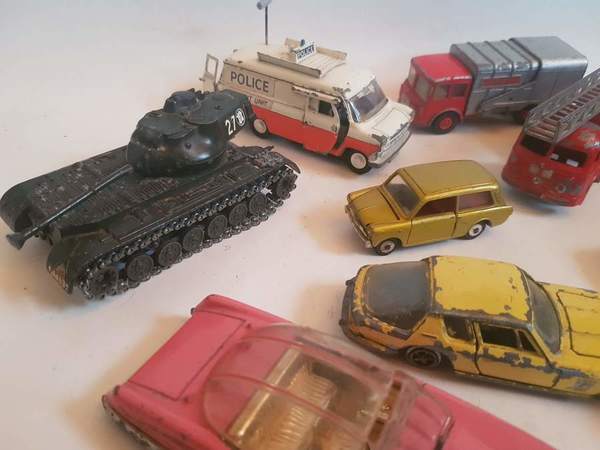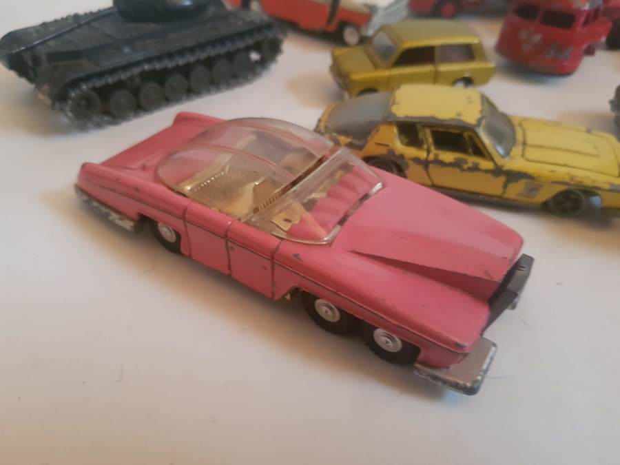 Thunderbirds lady Penelope auto, hierbij 8 andere modelen van o,a Dinky, Gama, Matchbox etc. (bespeelde staat) |