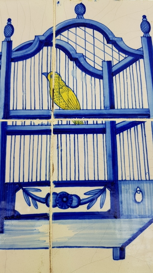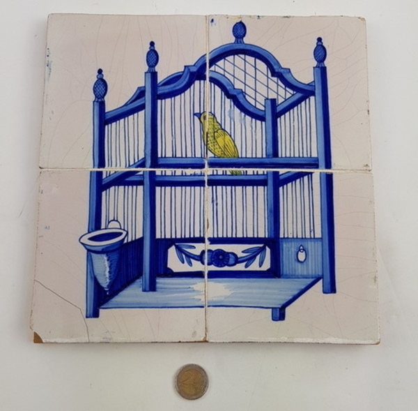 Tegel tableau met vogelkooi, Delft, eind 19e / begin 20e eeuw |