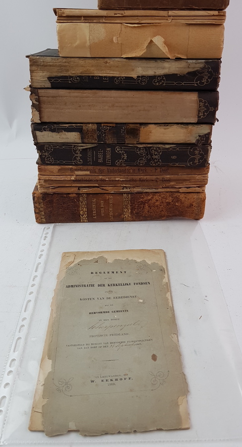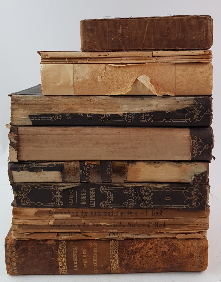 Een lot boeken met betrekking tot theologie, waaronder C. van Proosdij - Zacharius Ursinus. Verklaring op den Heidelbergschen Catechismus. Kampen: G. Ph. Zalsman, 1886. [Totaal: 12]. |