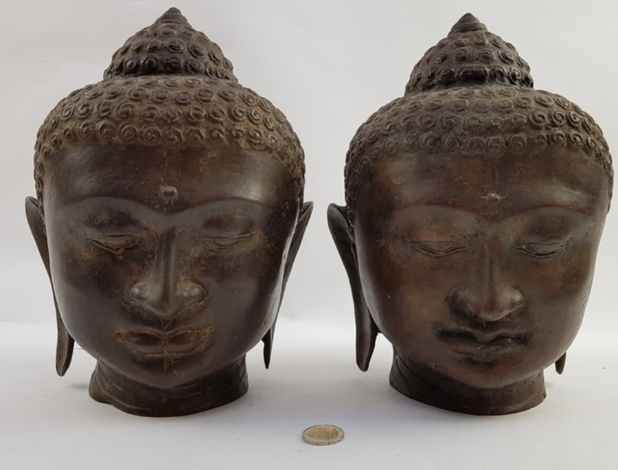 Boeddha hoofden van metaal, China, eind 20e eeuw