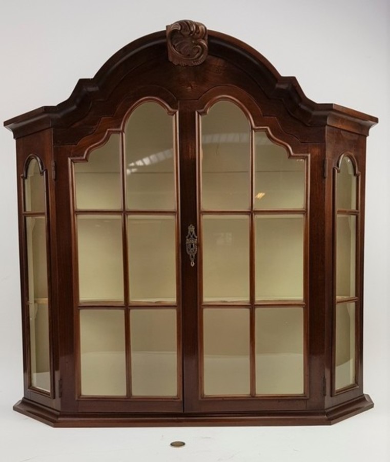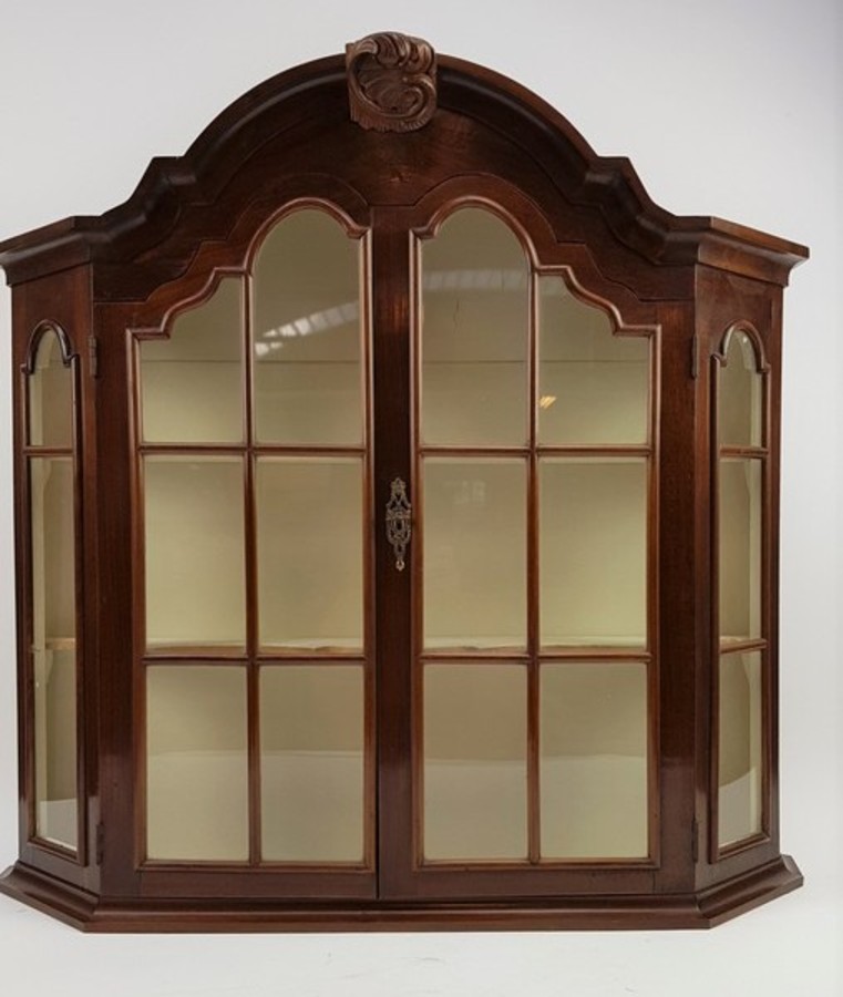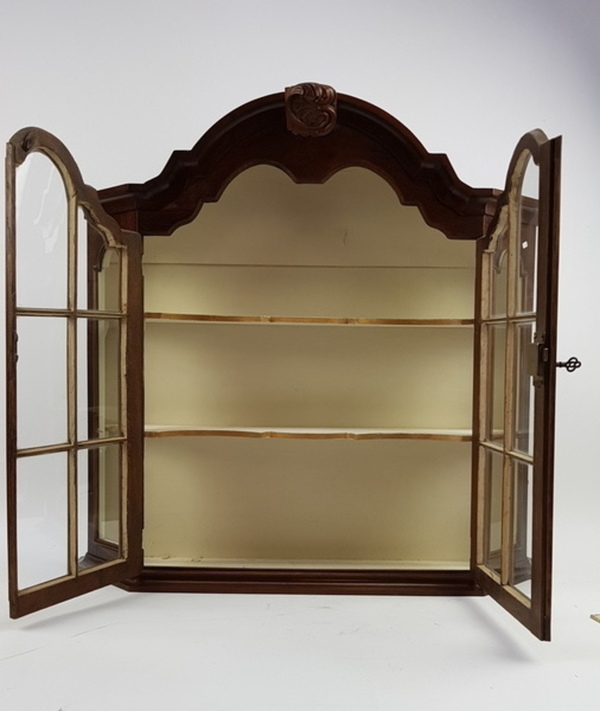 Hout, wand vitrine kast. 1e helft 20e eeuw. |