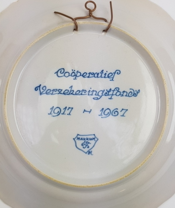 Wandbord Coöperatief Verzekeringsfonds 1917-1967, Makkum, tweede helft 20e eeuw