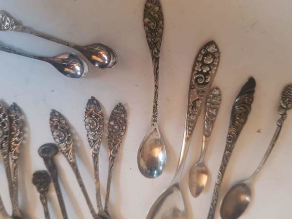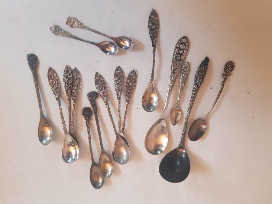 Lot lepeltjes met bloemenheft |