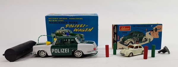 Schuco Politie auto en blikken politie auto op batterijen, Duitsland, ca. 1960