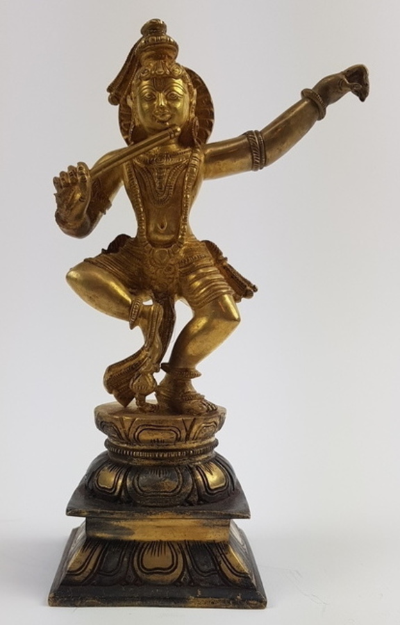 Messing beeld Krishna die fluit speelt, India, 20e eeuw