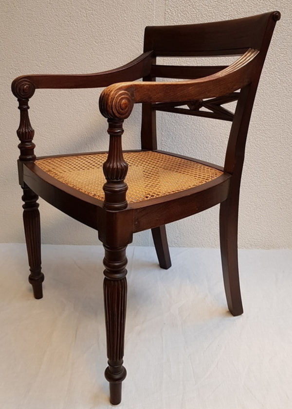 Een stel houten armleunstoelen met webbing zitting, 20 e eeuw.