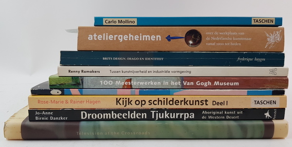 Een divers lot kunstboeken: design, schilderkunst, televisie etc. [Totaal 8].