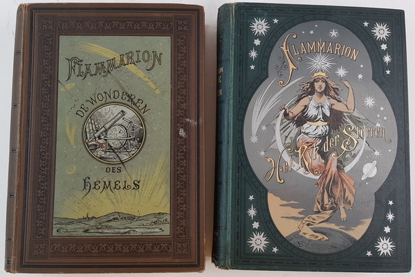 B. C. Goudsmit - De Wonderen des Hemels (Flammarions Astronomie Populaire) + Het Rijk der Sterren (Flammarion's Etoiles et Curiosites du Ciel). Zutphen W. J. Thieme & Cie., [1899]; Heusden: L. J. Veerman, [1885]. Gebonden in fraaie linnen stempelband. Met honderden gravures, gekleurde platen en kaarten. 667; 650pp.