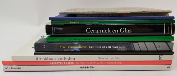 Een divers lot boeken over keramiek en glaswerk, waaronder Scherven & Geluk. Huwelijksserviezen in Nederland (uitgave Princessehof). [Totaal: 11].