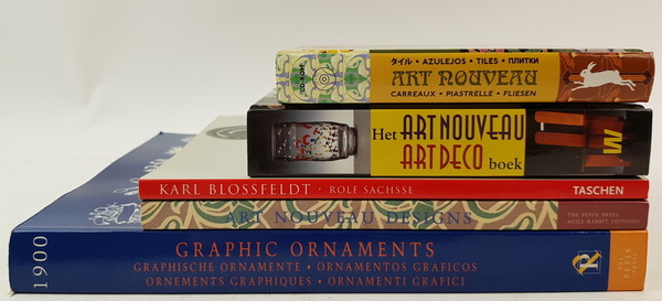 Een lot van 5 boeken over Art Nouveau en Art Deco, waaronder Art Nouveau tile designs en Het Art Nouveau Art Deco boek. Met vele illustraties in de delen. [Totaal: 5].
