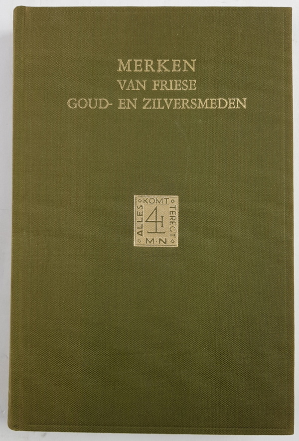 Elias Voet Jr. - Merken van Friese Goud- en Zilversmeden. 's-Gravenhage: Martinus Nijhoff, 1974. Tweede herziene en vermeerderde druk. Hardcover, gebonden in linnen met goudopdruk op voorplat en rug. 371pp. 4vo (25x16,5 cm). Belangrijk naslagwerk over Friese goud- en zilvermerken.