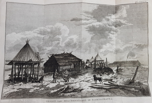James Cook, J. D. Pasteur (vert.) Reizen rondom de Waereld. Twaalfde deel. Met Kaarten en Plaaten. Leiden, Amsterdam, 's-Gravenhage: Honkoop, Allart en van Cleef, 1803. Gekartonneerde, blinde band. Titel oudtijds op de rug geschreven. 1 deel uit de grotere, bekende serie. Met fraaie, veelal uitvouwbare platen en kaarten. 419pp. 8vo (21x13 cm).