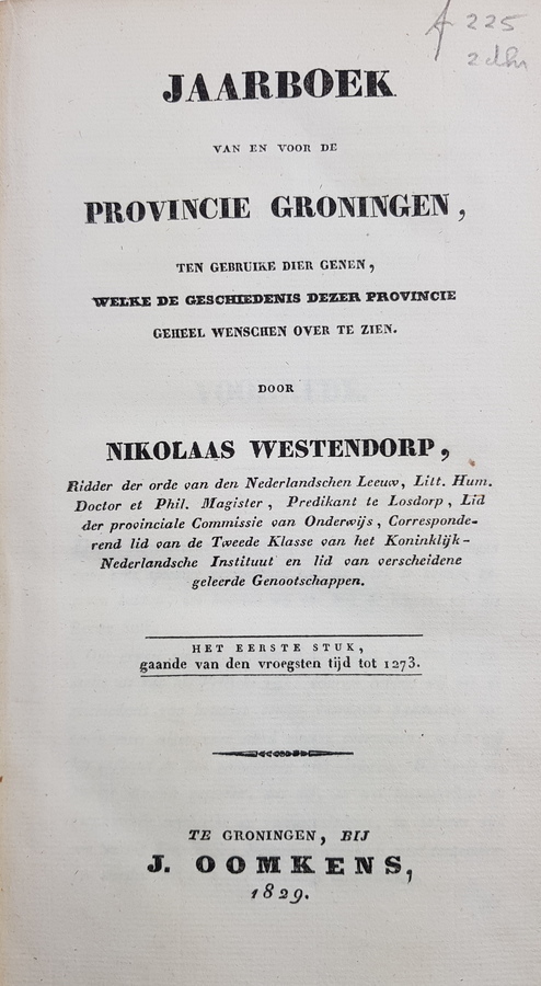 122. (Groningana) Nikolaas Westendorp - Jaarboek van en voor de Provincie Groningen (1829/1832)