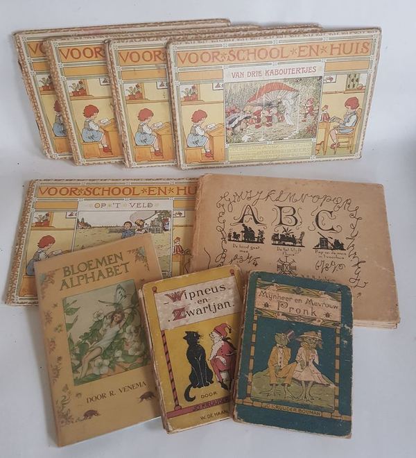 Jo Kruider Bouman hierbij mijheer en mevr Pronk Bloemen Alphabet, ABC nelly Bodenheim en 5 stuks voor school en huis illustaties Midderigh bokhorst. (totaal 8x)