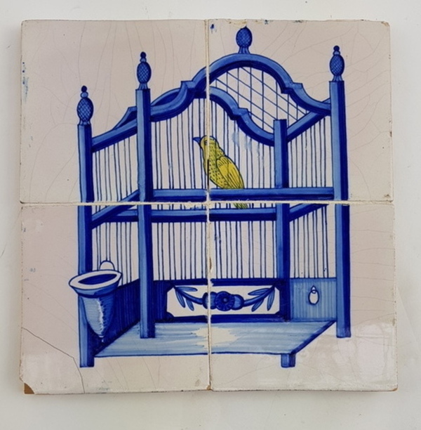 431. Tegel tableau met vogelkooi, Delft, eind 19e / begin 20e eeuw