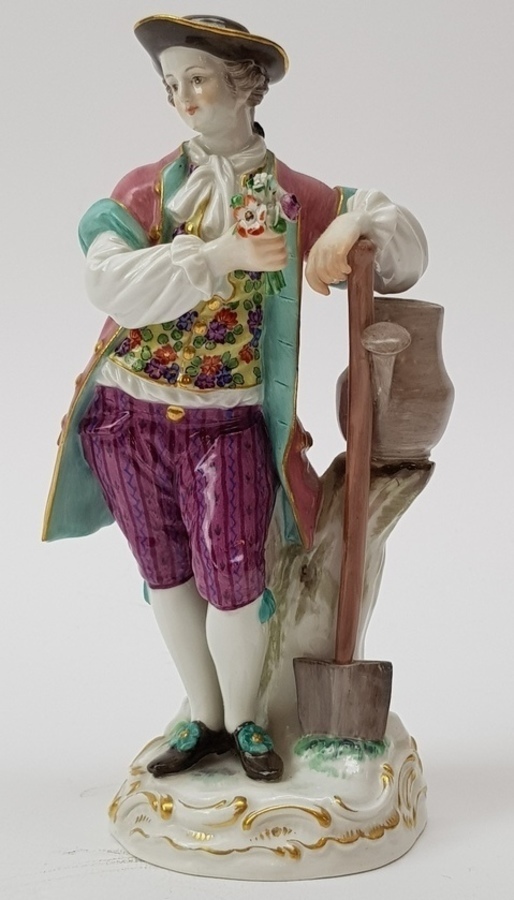 442. Porseleinen beeld van een mannelijke tuinier, Meissen Duitsland ca. 1900