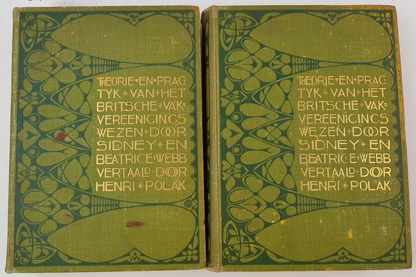 Sidney Webb & Beatrice Webb; Henri Polak (vert.) - Theorie en Practyk van het Britsche Vakvereenigingswezen. Rotterdam: H. A. Wakker, z.j. [ca. 1900]. 2 delen compleet. Met fraaie Art Nouveau-banden. Totaal 844pp. 8vo (24,5x18 cm)