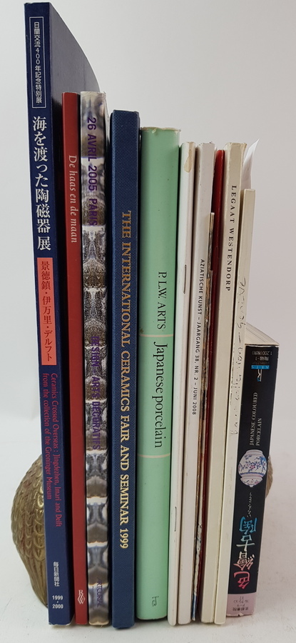 Een divers lot over Aziatisch keramiek en porselein, waaronder Ceramics crossed overseas. Jingdezhen, Imari and Delft from the collection of the Groninger Museum. [Totaal: 12].