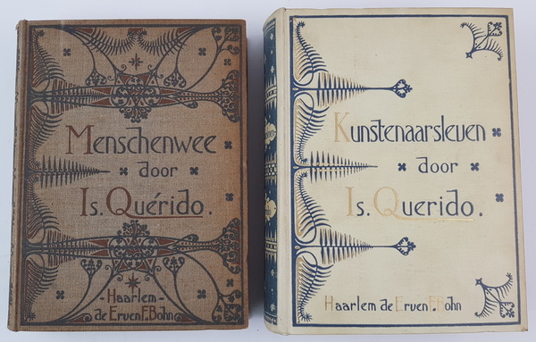 Is. Querido, Menschenwee. Roman van het Land. Haarlem: De Erven F. Bohn, [1903]. Met bandontwerp van Willem Karel Rees (1880-1962). 447pp. + Hierbij een andere titel van Is. Querido in een fraaie band: Kunstelaarsleven. Haarlem, De Erven F. Bohn, 1906. Twee delen in een band: 276; 284pp. Beide boeken gebonden in linnen. 8vo (22x17 cm).