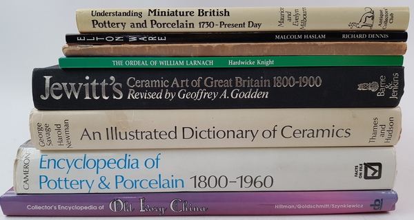 Een lot boeken over keramiek, de meeste over Brits porselein en pottenbakkerskunst etc. [Totaal: 8].