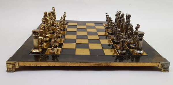 476. Stenen schaakbord met metalen stukken, 21e eeuw