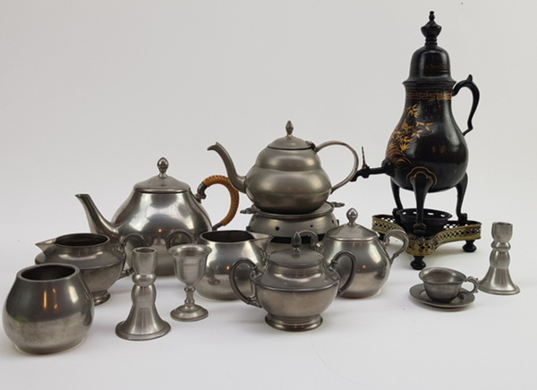 Tin, Lot divers tin 13 stuks waaronder 19e eeuwse kraantjespot.