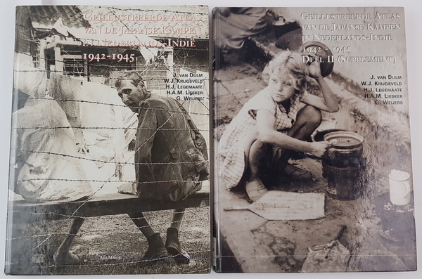 J. van Dulm, W. J. Krijgsveld e.a. - Geillustreerde atlas van de Japanse kampen in Nederlands-Indie. 2 delen compleet. Purmerend: Asia Maior, 2001/2002. Hardcovers, gekartonneerd. 4vo (34x25 cm). 224; 192pp.