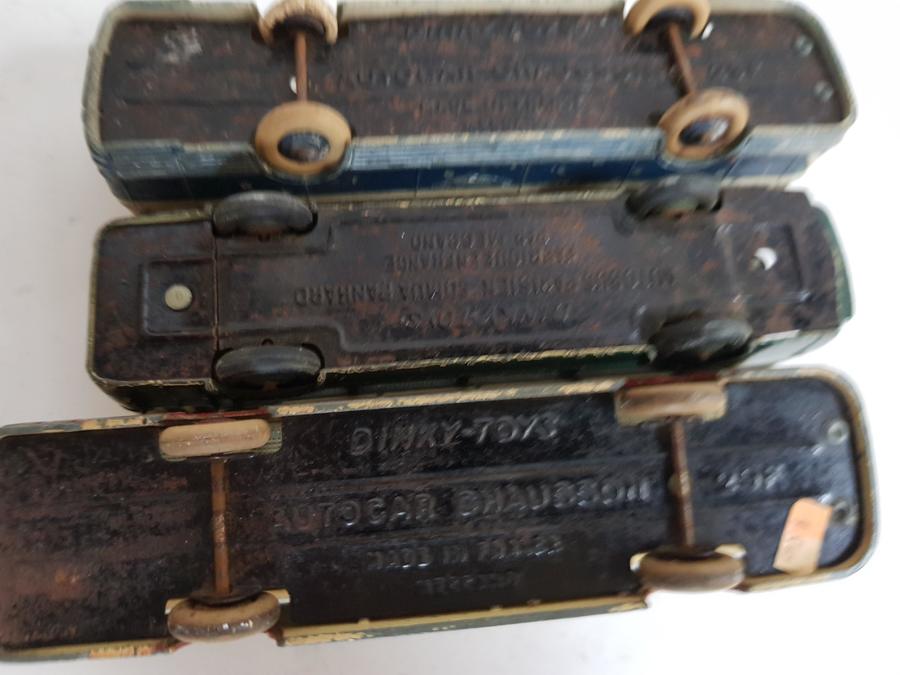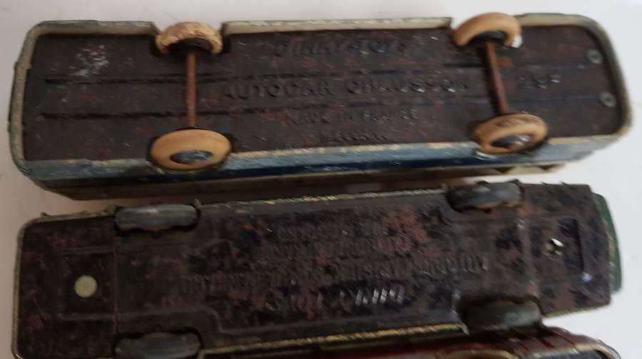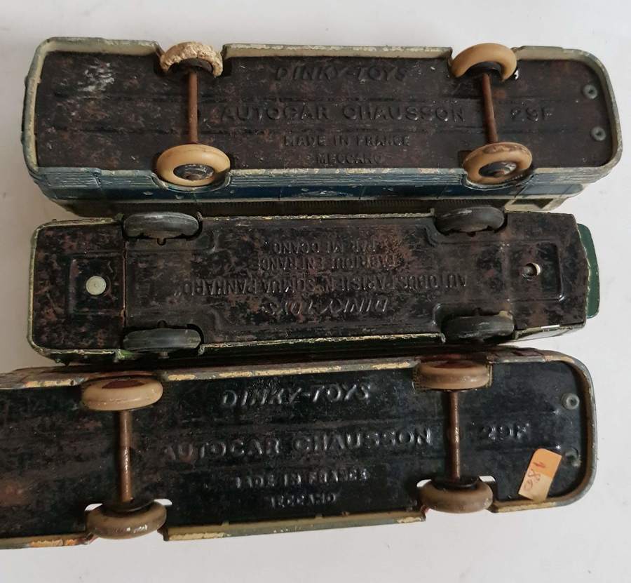 Franse Dinkys Autocar Chausson 29F, (blauwe en rode versie) Autobus Parisien Somua Panhard (bodem plaat doormidden) |