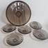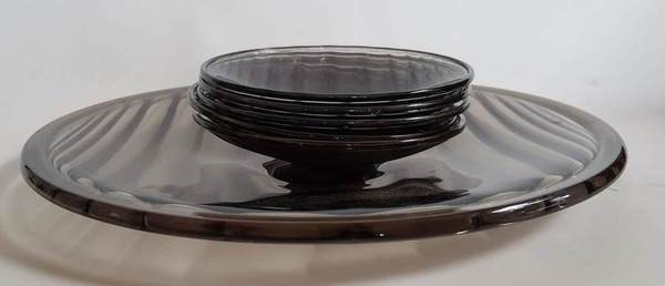 Grote schaal met 5 bijhorende kleinere schaaltjes. Alle met meegeperst merk. |