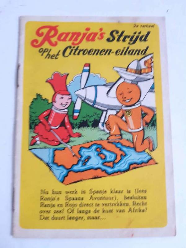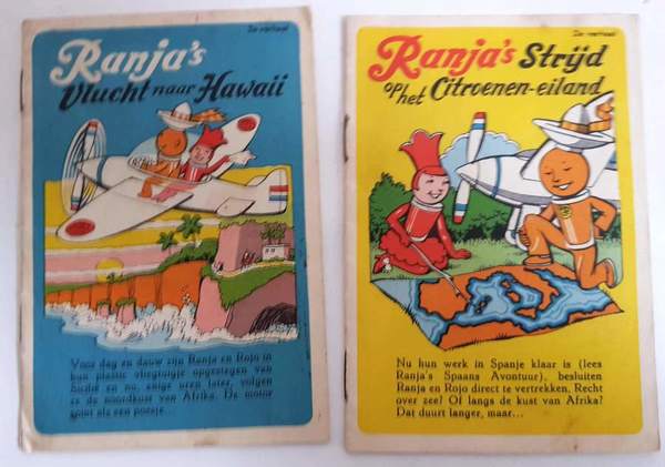 2e en het 3e verhaal van de avonturen van Rojo en Ranja. Ranja's strijd op het citroenen-eiland en Ranja's vlucht naar Hawaii. Uitgave C Polak Ranjafabriek in de stad Groningen |