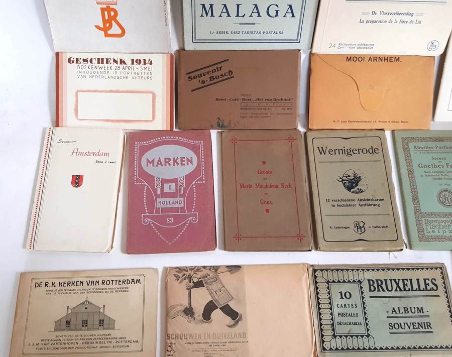 Lot met ansichtkaarten boekjes. O.a. Mooi Arnhem, Marken, Souvenir 's Bosch, Schouwen duivenland, Amsterdam etc. Totaal 16 mapjes |