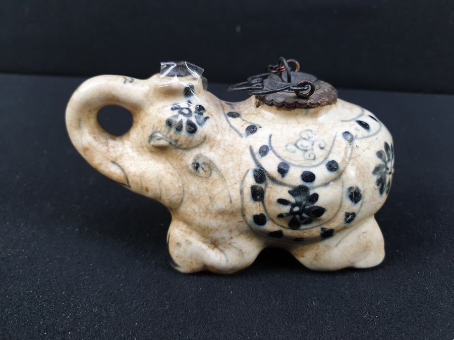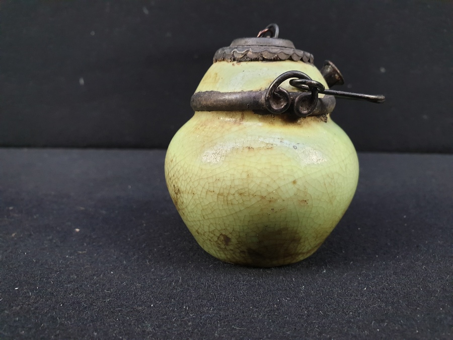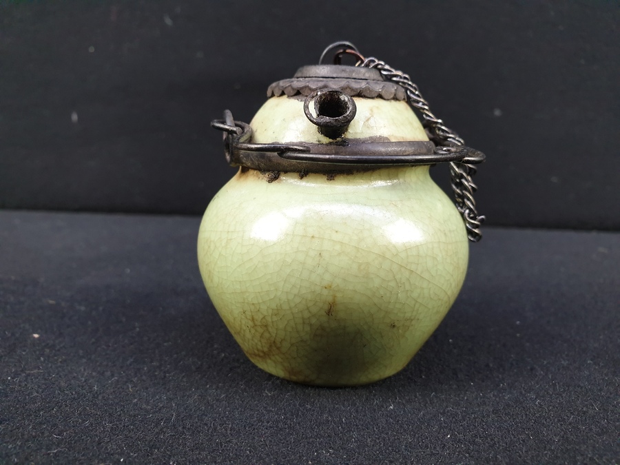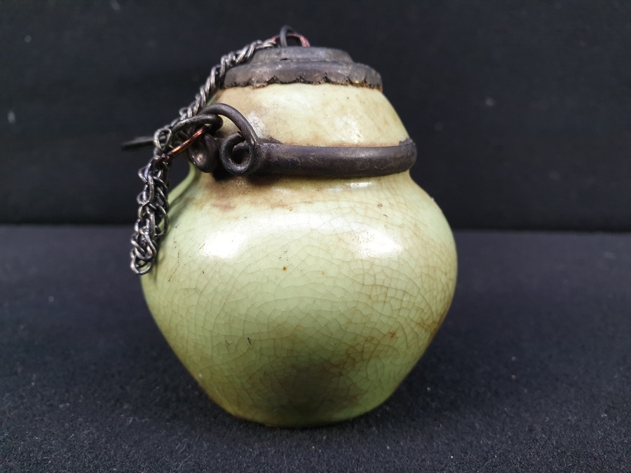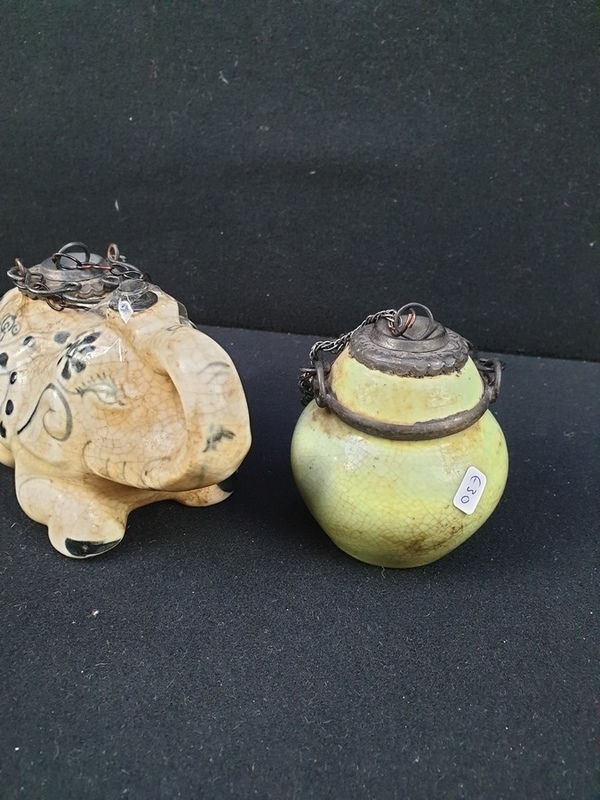 Aardewerk, twee waterpijpen, China, tweede helft 20e eeuw, mist de bronzen mondstukjes |