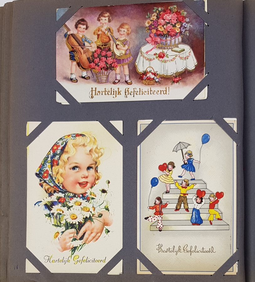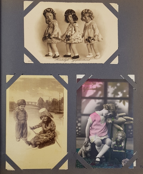 Een album fantasiekaarten, grotendeels gevuld, ca. 250 stuks. Hierbij een aantal topografische ansichten. De kaarten zijn veelal gelopen. |