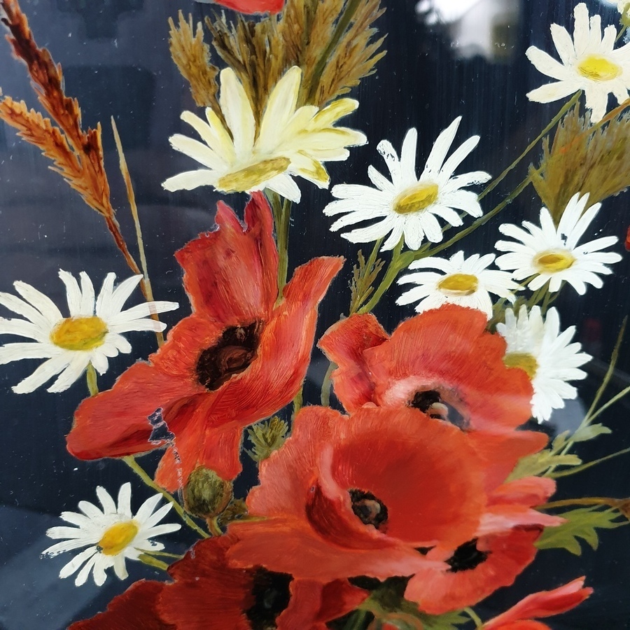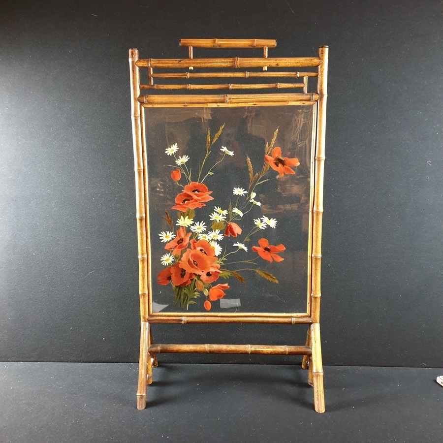 Bamboe haardscherm, China, eerste helft 20e eeuw, glas in waarschijnlijk Nederland beschilderd. |