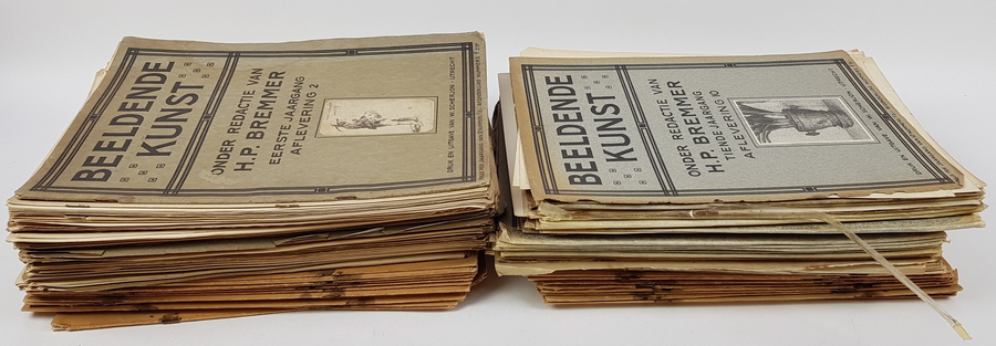 Een uitgebreid lot met nummers van H. P. Bremmer (red.) - Beeldende Kunst. Utrecht: W. Scherjon. Onder meer een aantal uit vroege jaargangen. Met vele platen en afbeeldingen van kunst in zwart-wit. |