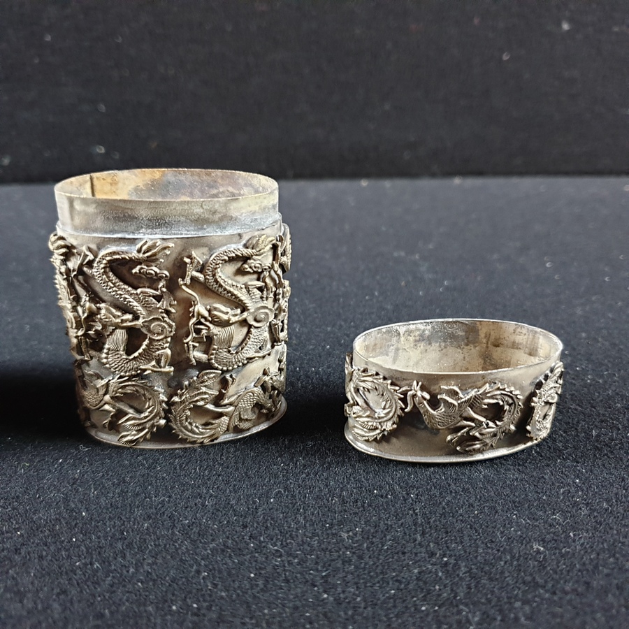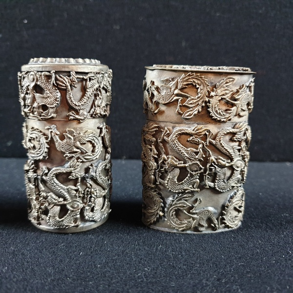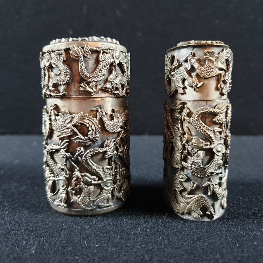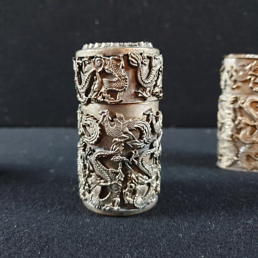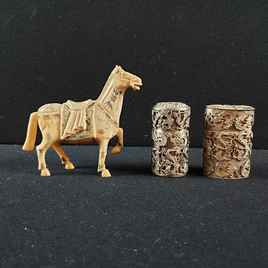 Benen paard en twee verzilverde pillendoosjes, China, tweede helft 20e eeuw |