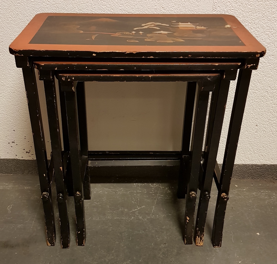 Set van drie bijzettafels Japans lakwerk eerste helft 20e eeuw |