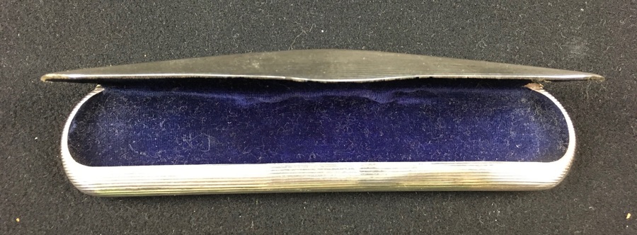 Plate/alpacca, lot van 7 stuks waaronder een brillenkoker, 19/20e eeuw.