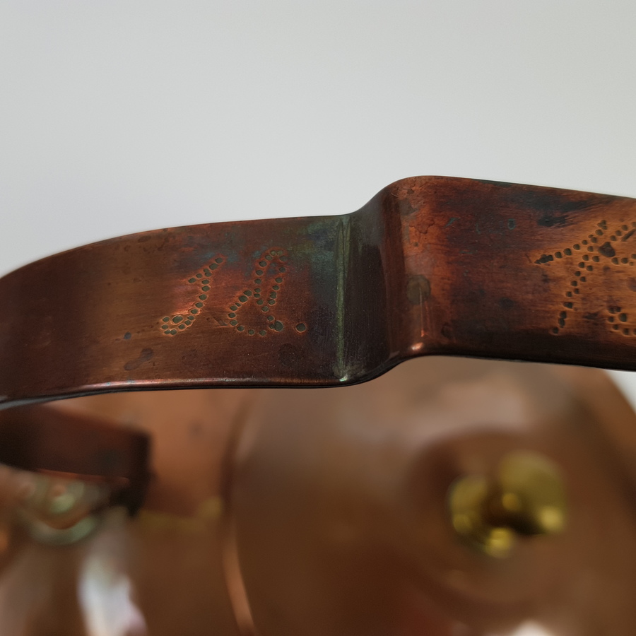 Divers lot koper o.a. ketels en een emmer. Een ketel gedateerd 1874. |