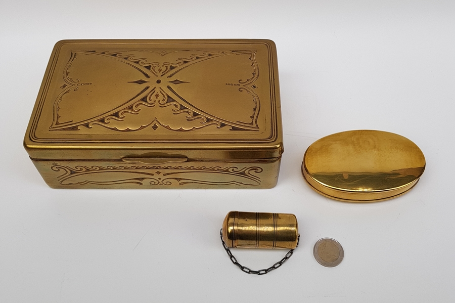 Kist, doos en een tondeldoosje. |
