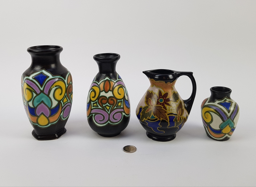 Aardewerk, plateel vaasjes, België/ Nederland, eerste helft 20e eeuw