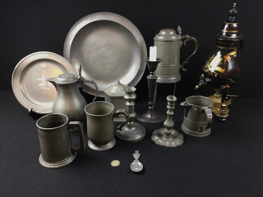 Tin, een divers lot wo. een kraantjespot, Holland e.a. 19e en 20e eeuw