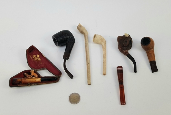 Pijpen divers materialen wo. meerschuim, 19e en 20e eeuw |