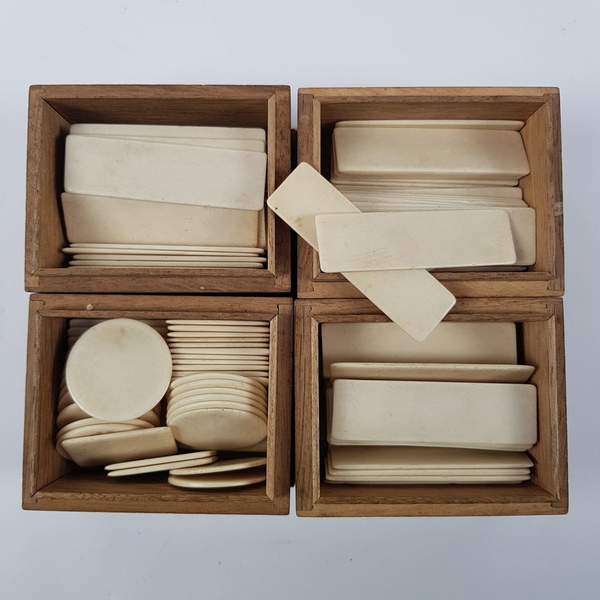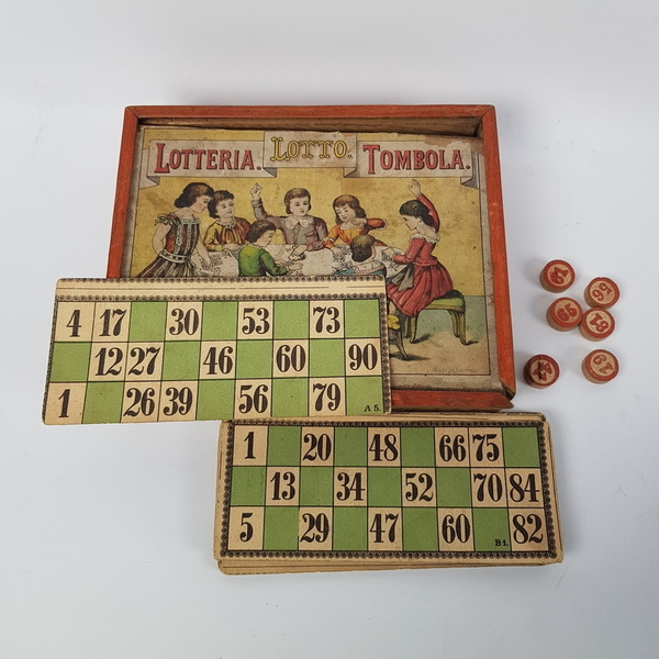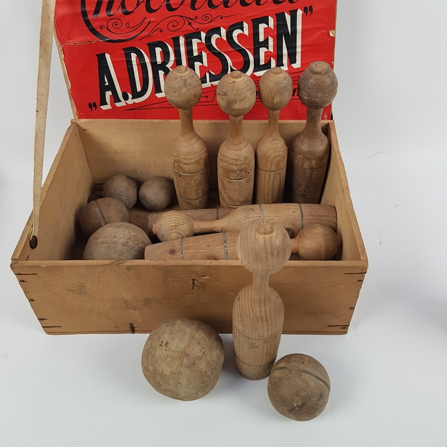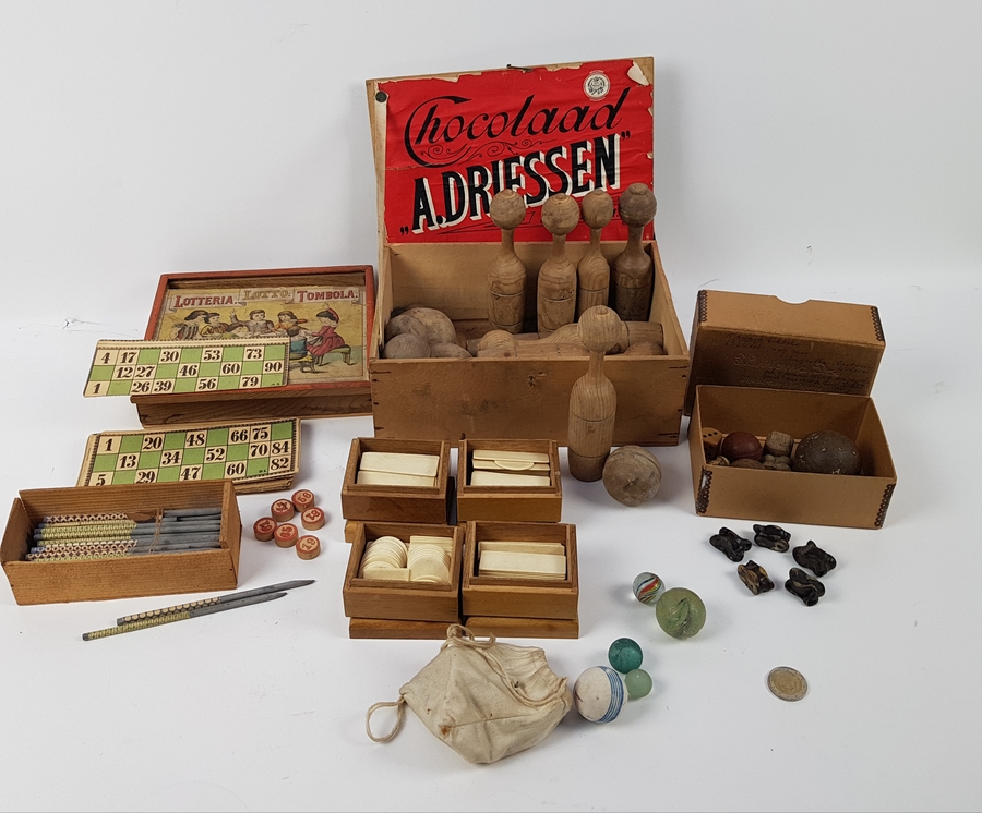 Diverse spellen o.a. bikkelen en tombola wo. Driessen cacao, eerste helft 20e eeuw |