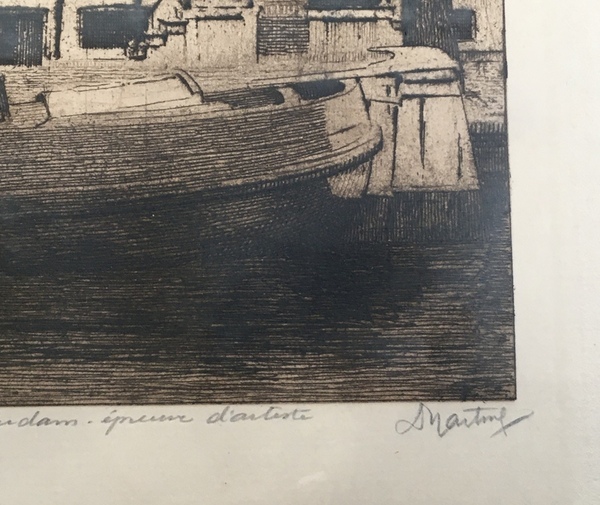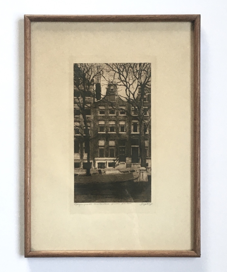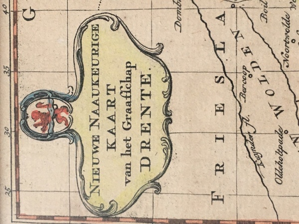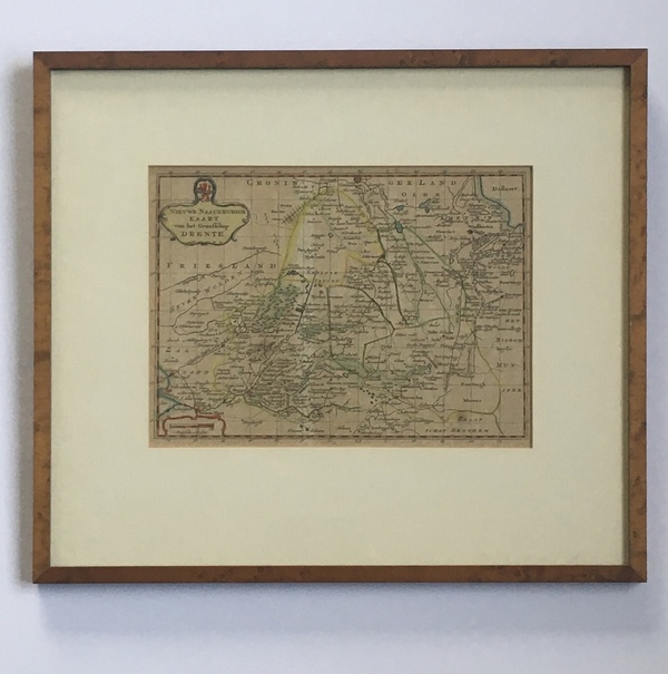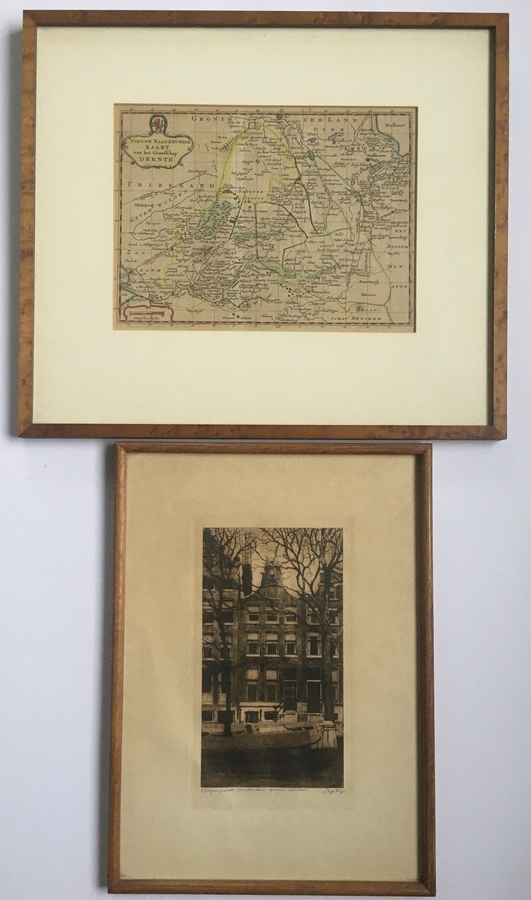 Ets, Keizersgracht Amsterdam en ingekleurde landkaart van Drenthe uit 1742. |