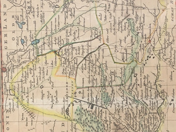 Ets, Keizersgracht Amsterdam en landkaart Drenthe 1742